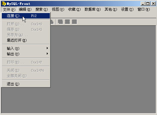 MySQL-Front是一款操作简单的mysql远程管理工具,在使用此工具前请先在您本机安装Mysql数据库。 下载地址: MySQL-Front: http://www.newhua.com/soft/33451.asp 本教程是以MySQL-Front 3.2为例,安装完运行MySQL-Front 1、首先建立连接,点文件---新建(F12)